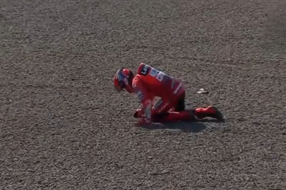 Le ha hecho muchísimo daño en el hombro, como sea alguna rotura…????#MotoGP #IndonesianGP pic.twitter.com/qUqFPkwMKN