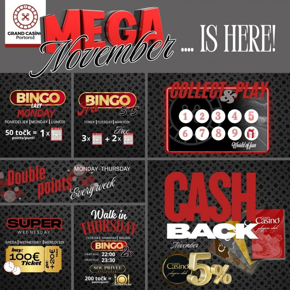 V Grand Casinoju Portorož je november dobil prav poseben pomen. Vstopili smo v čas, ko se narava umirja, dnevi postajajo krajši, mi pa začenjamo hrepeneti po toplini, zabavi in prazničnem vzdušju. Zato so november letos poimenovali kar Mega november – mesec, ki prinaša obilje dogajanja, posebnih promocij in dogodkov, ki jih enostavno ne smete zamuditi.