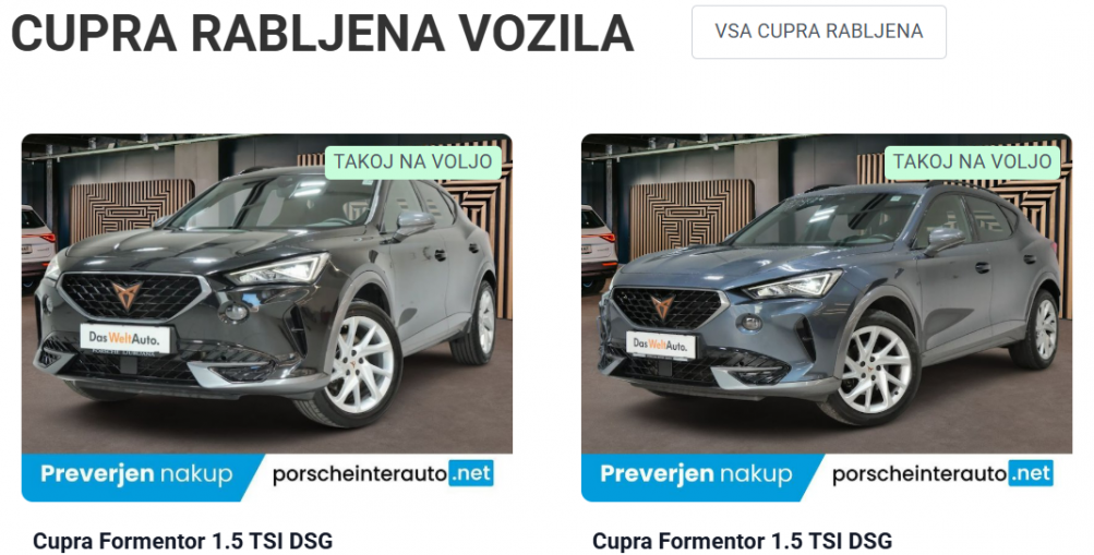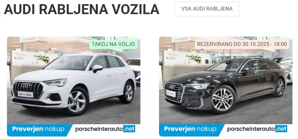 Podjetje Porsche Inter Auto d.o.o. je eden izmed največjih slovenskih trgovcev z vozili Volkswagen, Audi, SEAT, CUPRA, Škoda, VW Gospodarska vozila in Porsche. V Sloveniji ima podjetje pet poslovalnic: Porsche Ljubljana, Porsche Verovškova, Porsche Koper, Porsche Maribor in Porsche Ptujska cesta. Na spletnem portalu porscheinterauto.net boste lahko našli trenutno največjo ponudbo novih, rabljenih ter službenih v Sloveniji. S svojo zavezanostjo visokim standardom kakovosti in odličnosti si je pridobilo zaupanje številnih strank. V njihovem impresivnem voznem parku najdemo tudi najbolj kakovostna rabljena vozila, ki so temeljito pregledana in certificirana, kar zagotavlja brezskrbnost in zanesljivost za nove lastnike. Stranke, ki iščejo vrhunsko rabljeno vozilo, lahko pričakujejo izjemno storitev in podporo strokovnega osebja. Porsche Inter Auto Slovenija si prizadeva zagotoviti, da je nakup rabljenega vozila prek spleta preprost, varen in izjemno zadovoljiv za vsakega kupca.
