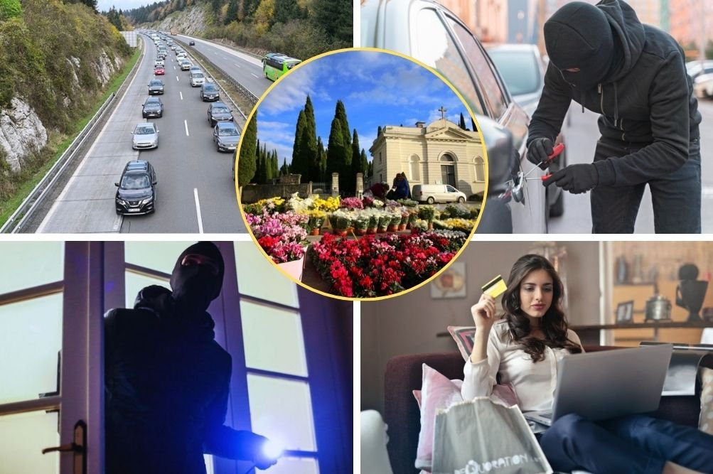 Prav tako opozarjajo, da se ob pokopališčih in drugih zbirališčih pogosto pojavljajo vlomi v vozila. Vozila naj bodo vedno zaklenjena, iz njih pa odstranite vrednejše predmete (torbice, telefone, denarnice, plašče ...).