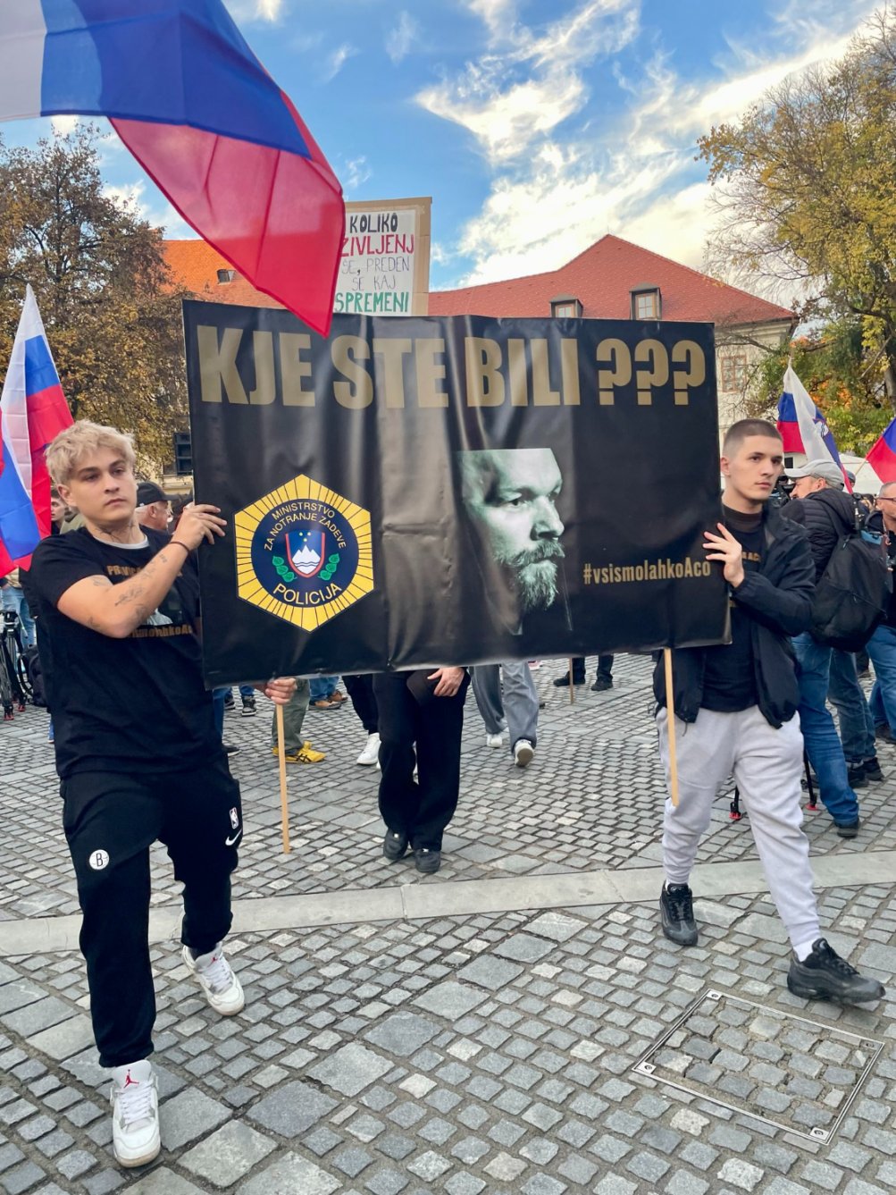 Ljudje so se na Glavnem trgu začeli zbirati že kakšno uro pred izredno sejo, ki se je začela ob 17. uri. Osrednji novomeški trg so že dodobra napolnili in še prihajajo. Mnogi so oblečeni v črno, nosijo majice in kape z napisi Pravica za Acota, kot so klicali umrlega, ter #VsismolahkoAco. S transparenti sporočajo, da njegova smrt ne sme biti zaman in še: Če te to ne razjezi, nisi dovolj pozoren ter Dovolj je bilo!