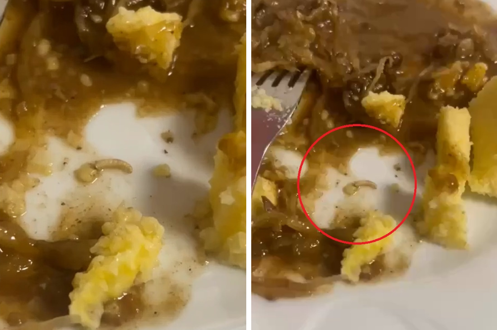 Fotografija, ki je nastala prejšnje šolsko leto. Na njej črv v hrani, ki so jo postregli dijakom Srednje šole Izola.