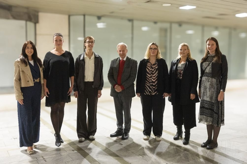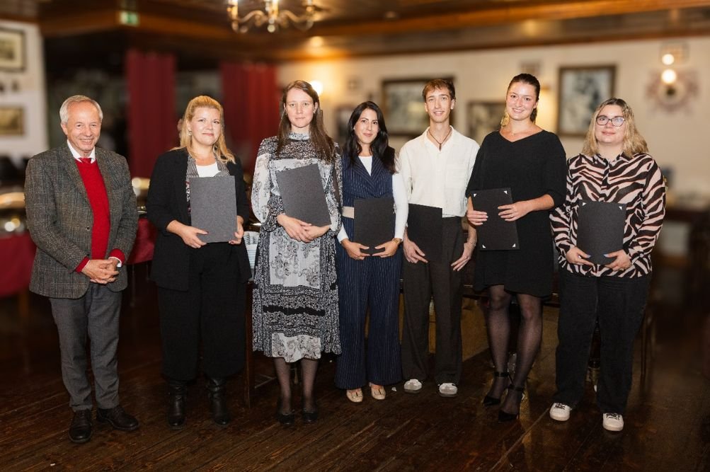 Prof. dr. Edvard Kovač s štipendisti: Martina Rokolj, Nina Pahor, Diana Košir, Matija Kristan, Taja Jereb in Klara Eva Drašković.